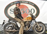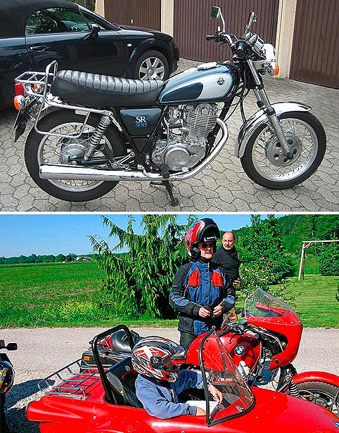 fährt neben der SR noch ein knallrotes BMW-Gespann. Sie ist mit Sack,